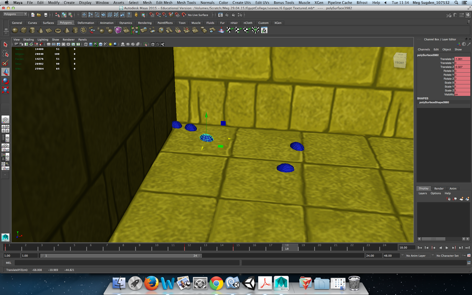 I then moved onto adding in the animations onto my own level, Egypt. This included adding in the necessary scripts to get the spike traps moving up and down in the correct manner along with getting the blades swinging and the correct doors to open once the lever is pulled using an action button. This seemed quite complex to begin with but as I moved through it began more apparent that there wasn't as much scripting as I initially thought there would be.